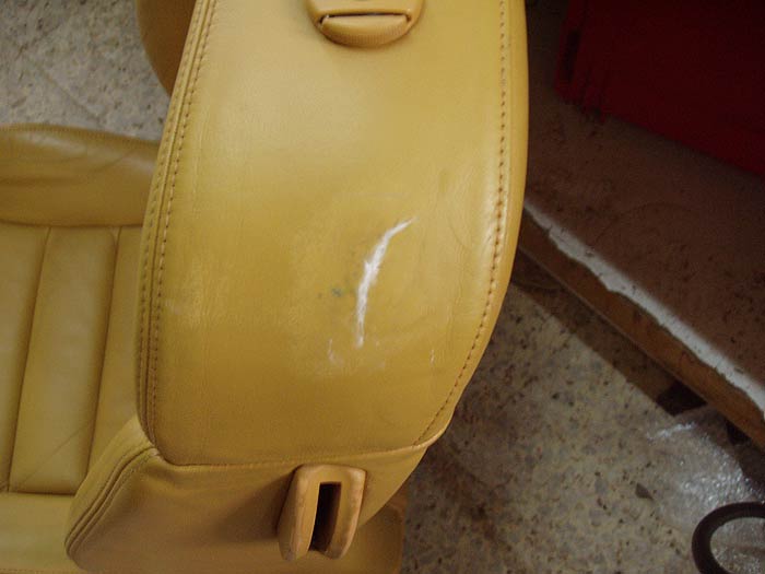 Y en uno de los asientos vemos que hay un roto en la zona del respaldo que tendremos que reparar con cuero líquido.